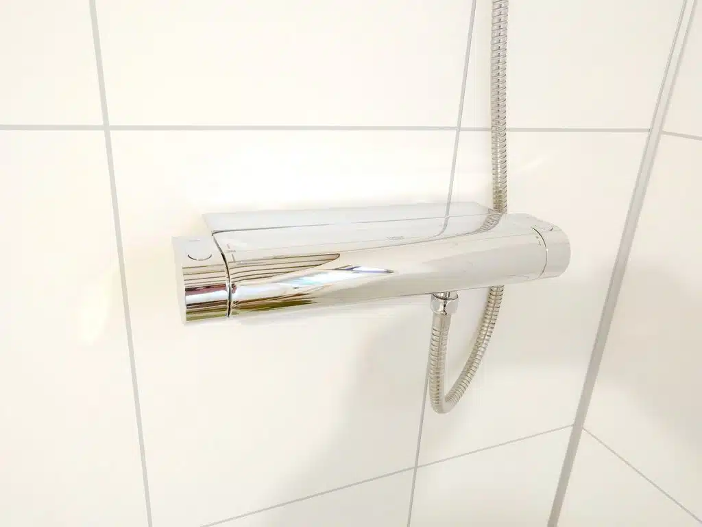 Die Armaturen in der Dusche stammen von GROHE, die Waschtischarmatur von Hansgrohe. Billige Armaturen sind schnell „sauer“, und die Chrombeschichtung verliert rasch ihre Optik.