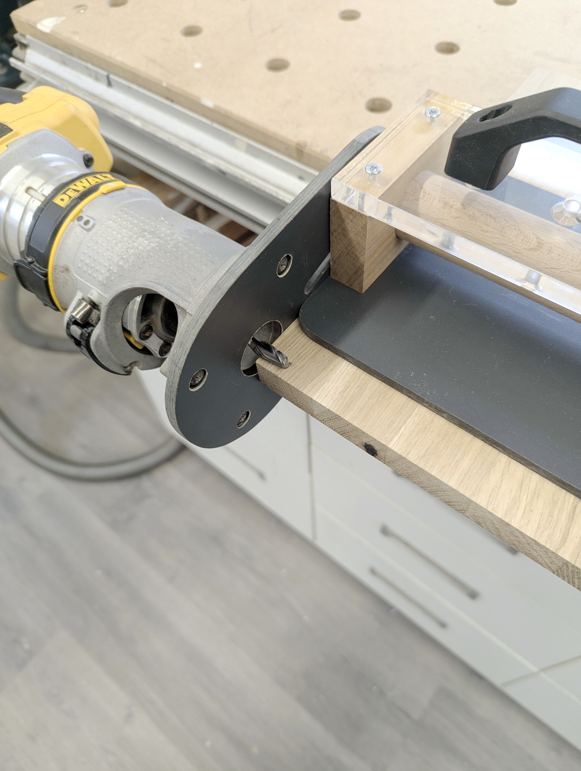 Deshalb habe ich dieses Eckenfräsgerät gebaut, mit dem ich nun präzise jede Ecke rund bekomme.