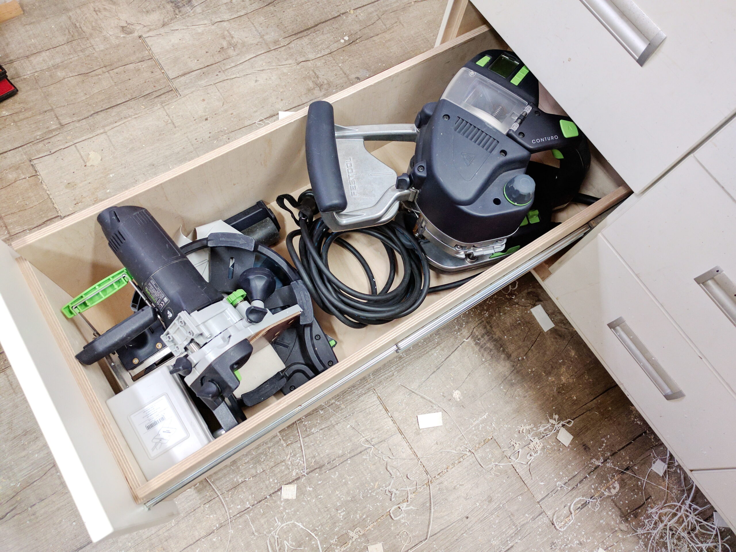 Und ja, günstig ist der Festool KA 65 CONTURO wirklich nicht. Mit einem Setpreis von 4.526,17 Euro brutto überlegt man sich sehr genau, ob sich die Anschaffung lohnt. Hinzu kommt noch eine gute Kantenfräse – in meinem Fall die Festool MKF 700 für knapp 900 Euro im Set.