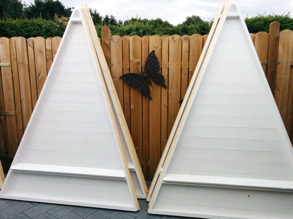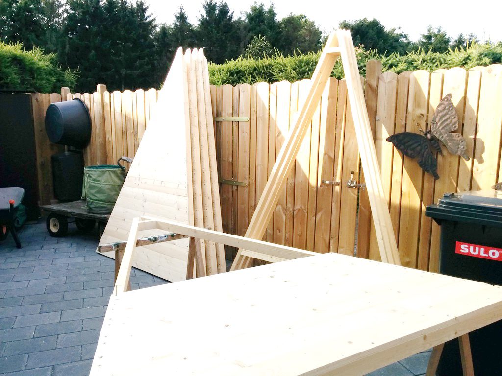 Die Gitterelemente waren schnell fertig. Sind eben nur Verleimungen der Rahmenteile und der Streben.