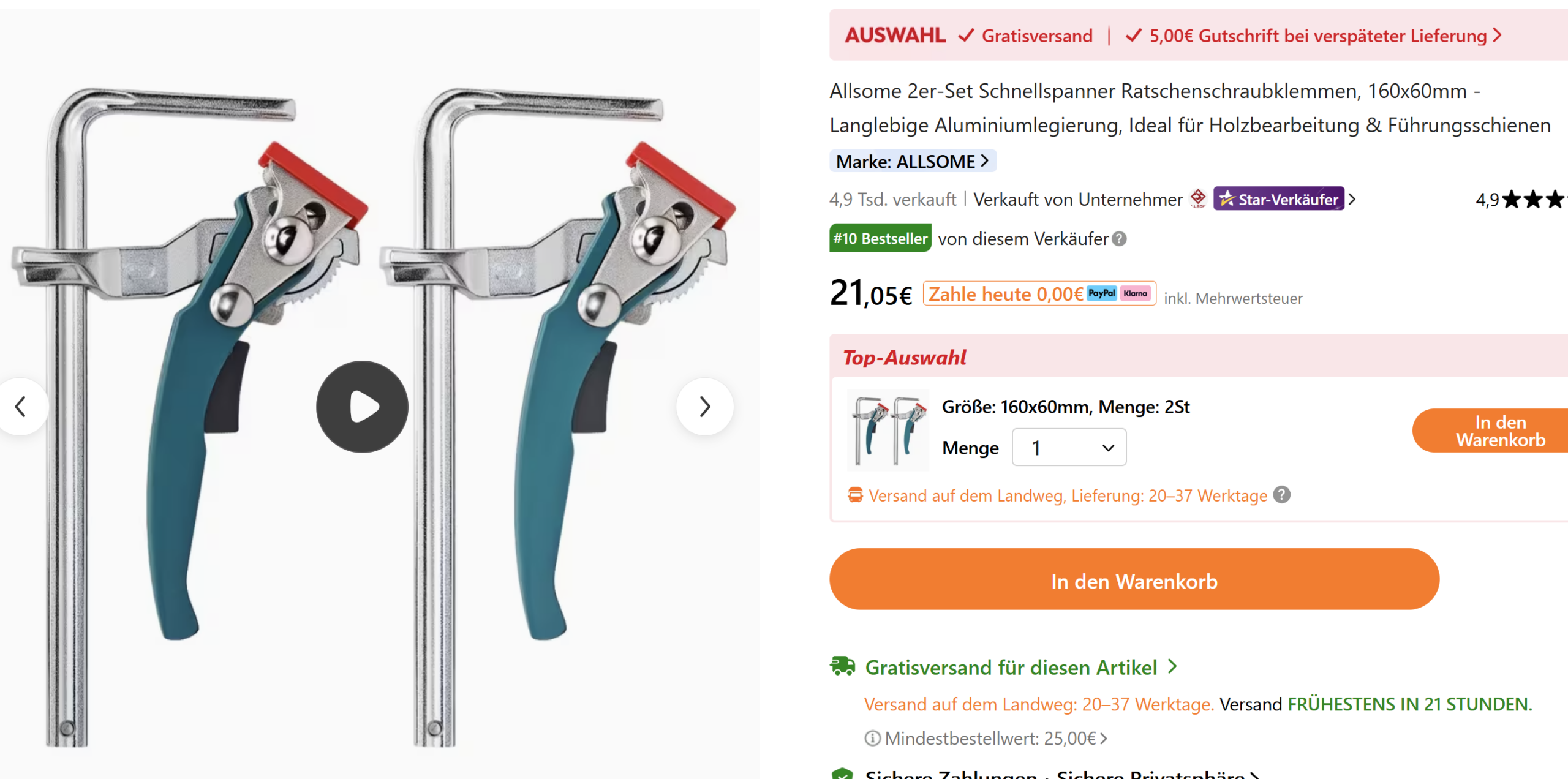 In einem Angebot bei Temu habe ich zwei Hebelzwingen für 21 Euro gesehen – also rund 10 Euro pro Stück.
