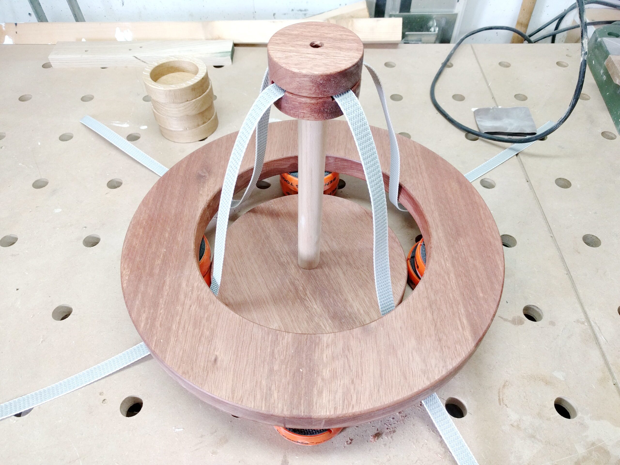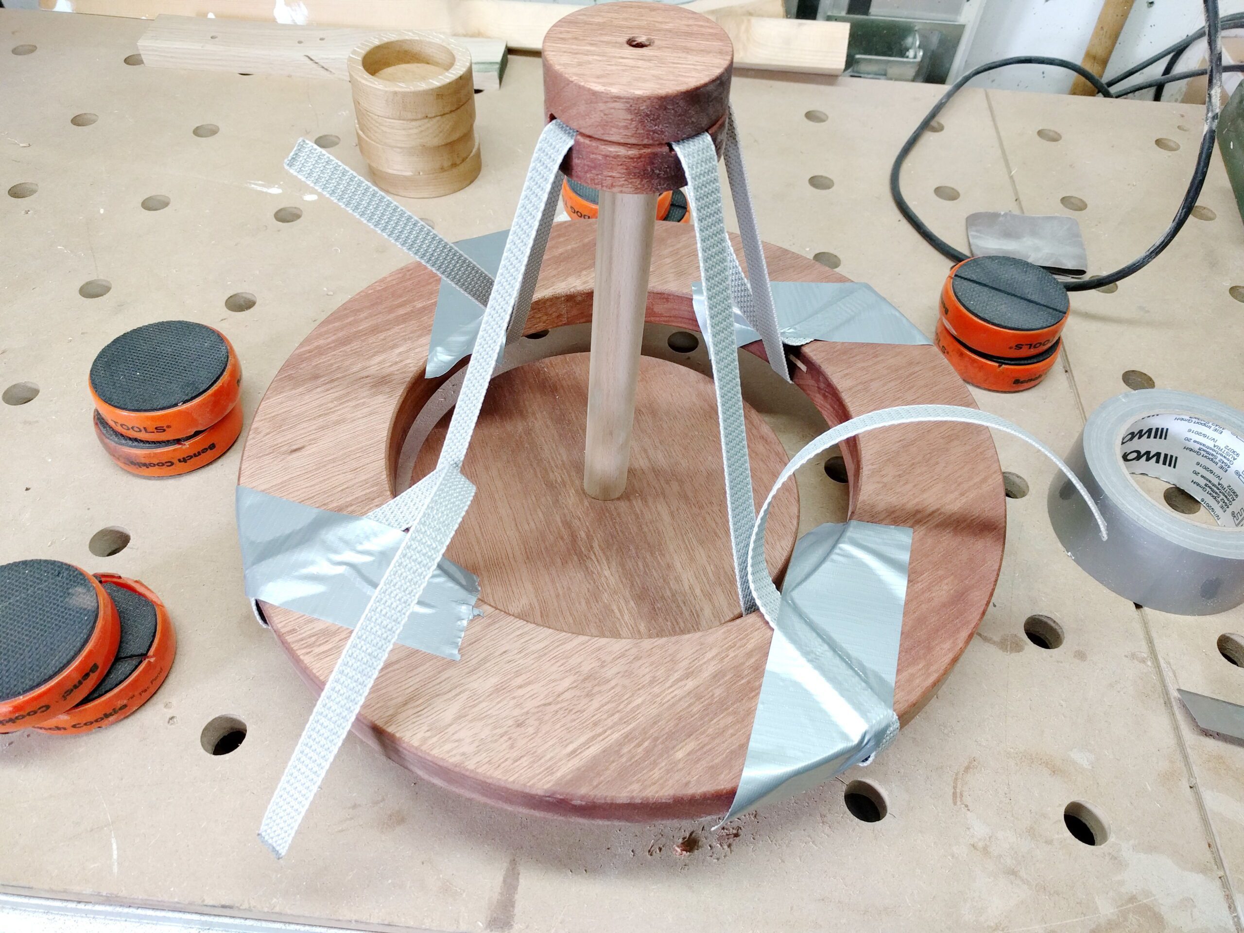 Hier beschreibe ich den Bau eines Adventskranzes aus Meranti und Eiche in einzelnen Schritten.