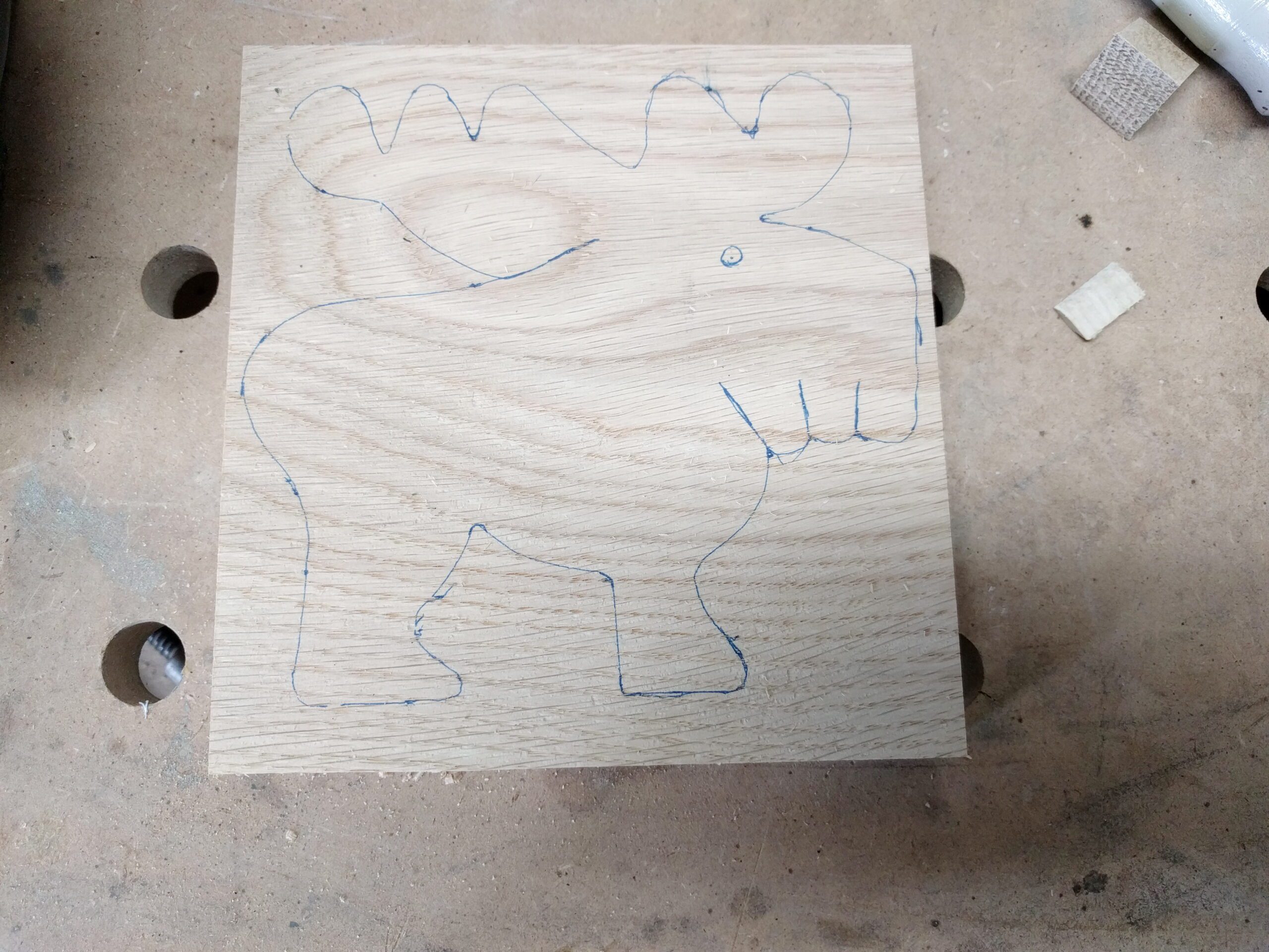 Die Konturen habe ich auf die Eiche übertragen und diese genau mit der Dekupiersäge ausgesägt.