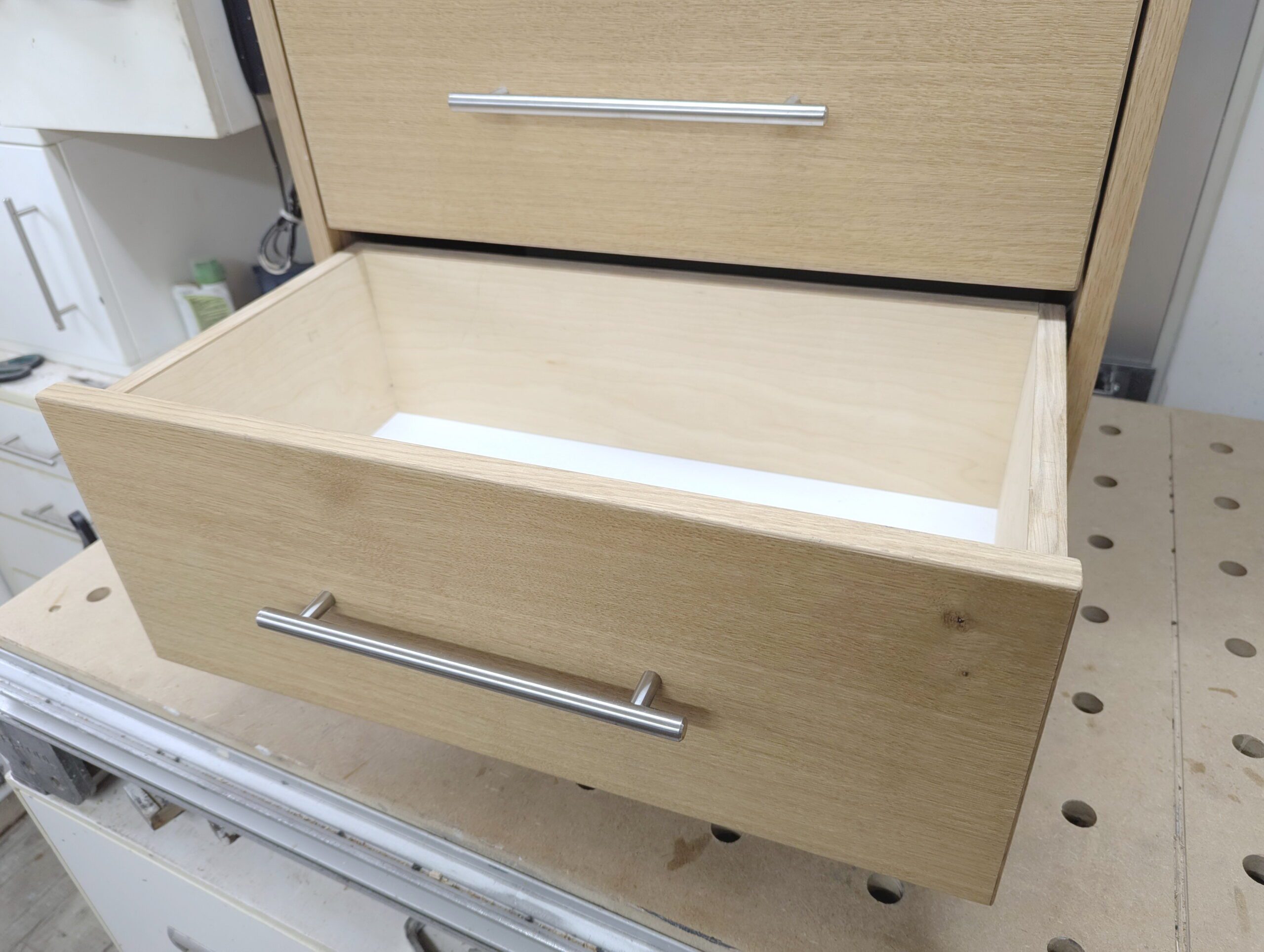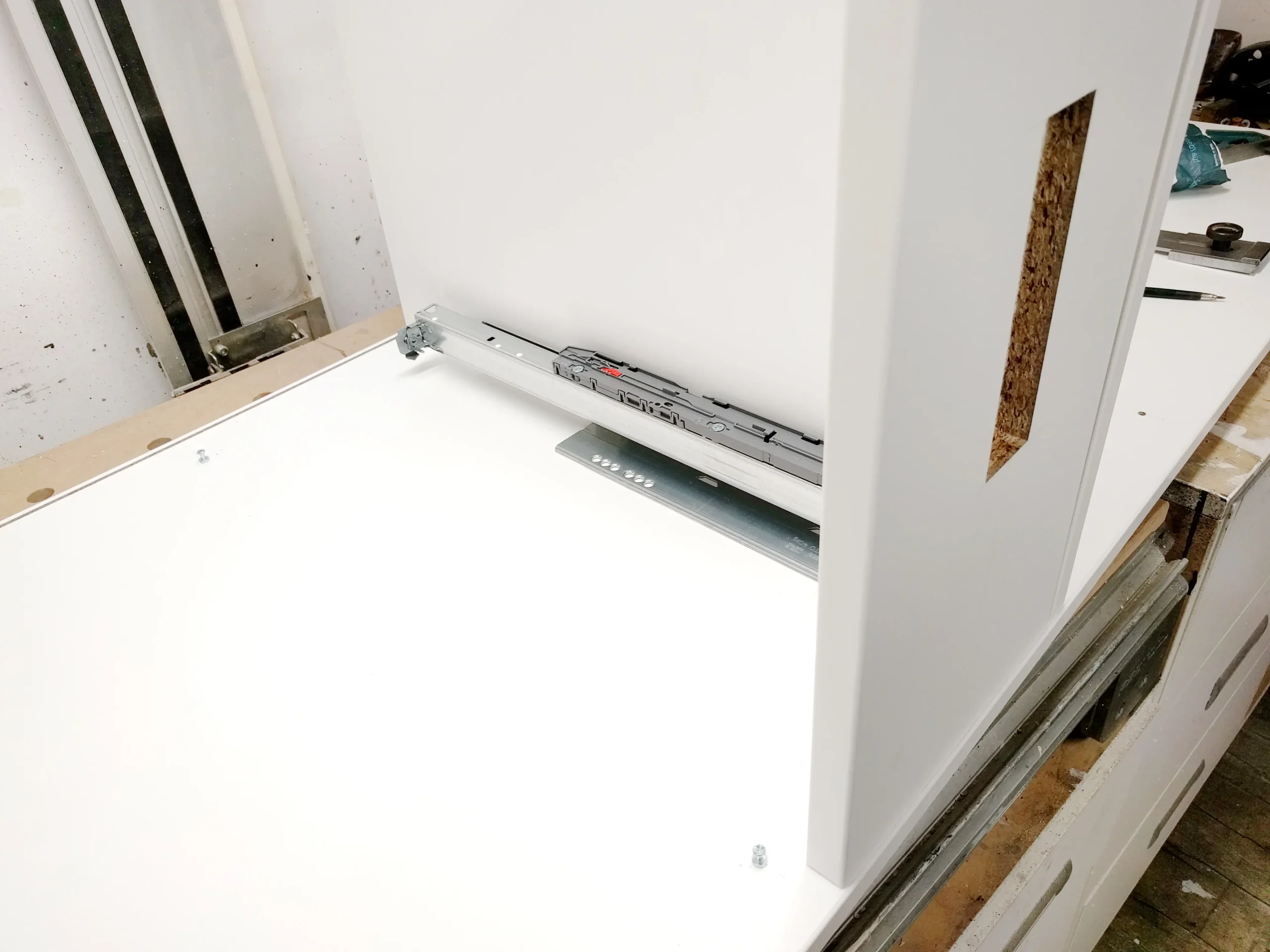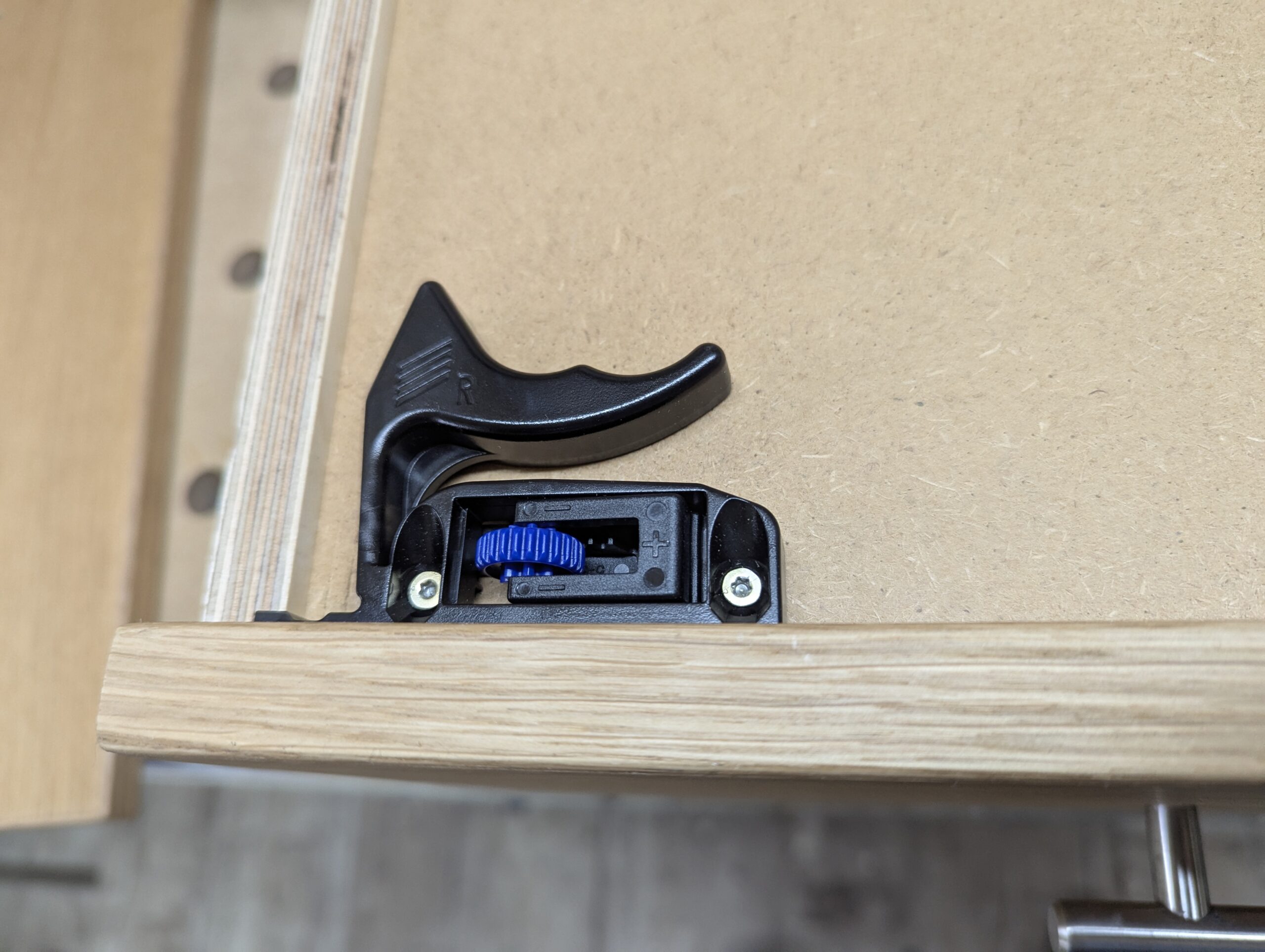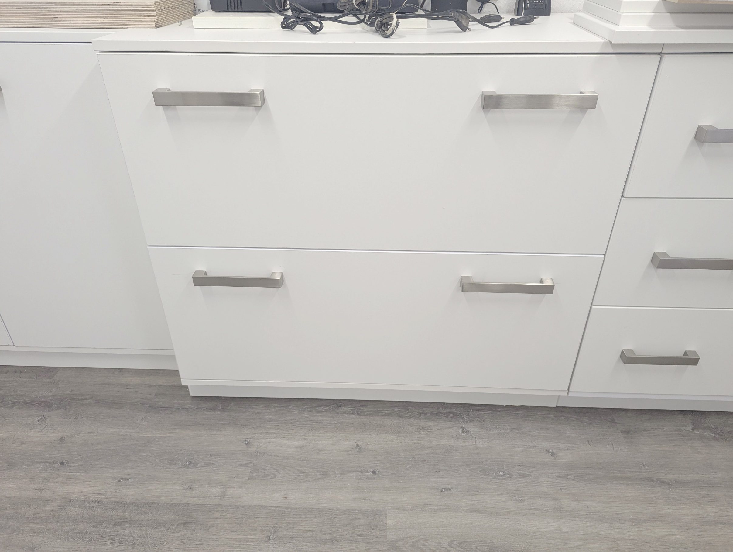 Auch die Griffe habe ich anschließend schon angebracht, denn im zusammengebauten Zustand komme ich an die Schrauben nicht mehr von hinten ran.