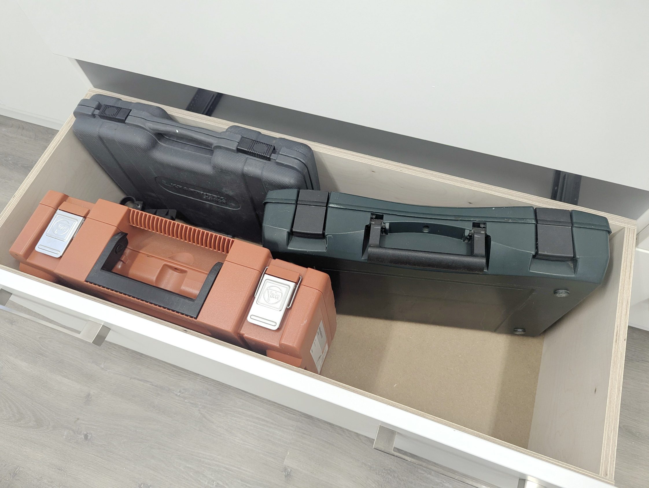 Das beste Schutzmittel gegen Späne und Staub sind Schränke in der Werkstatt.