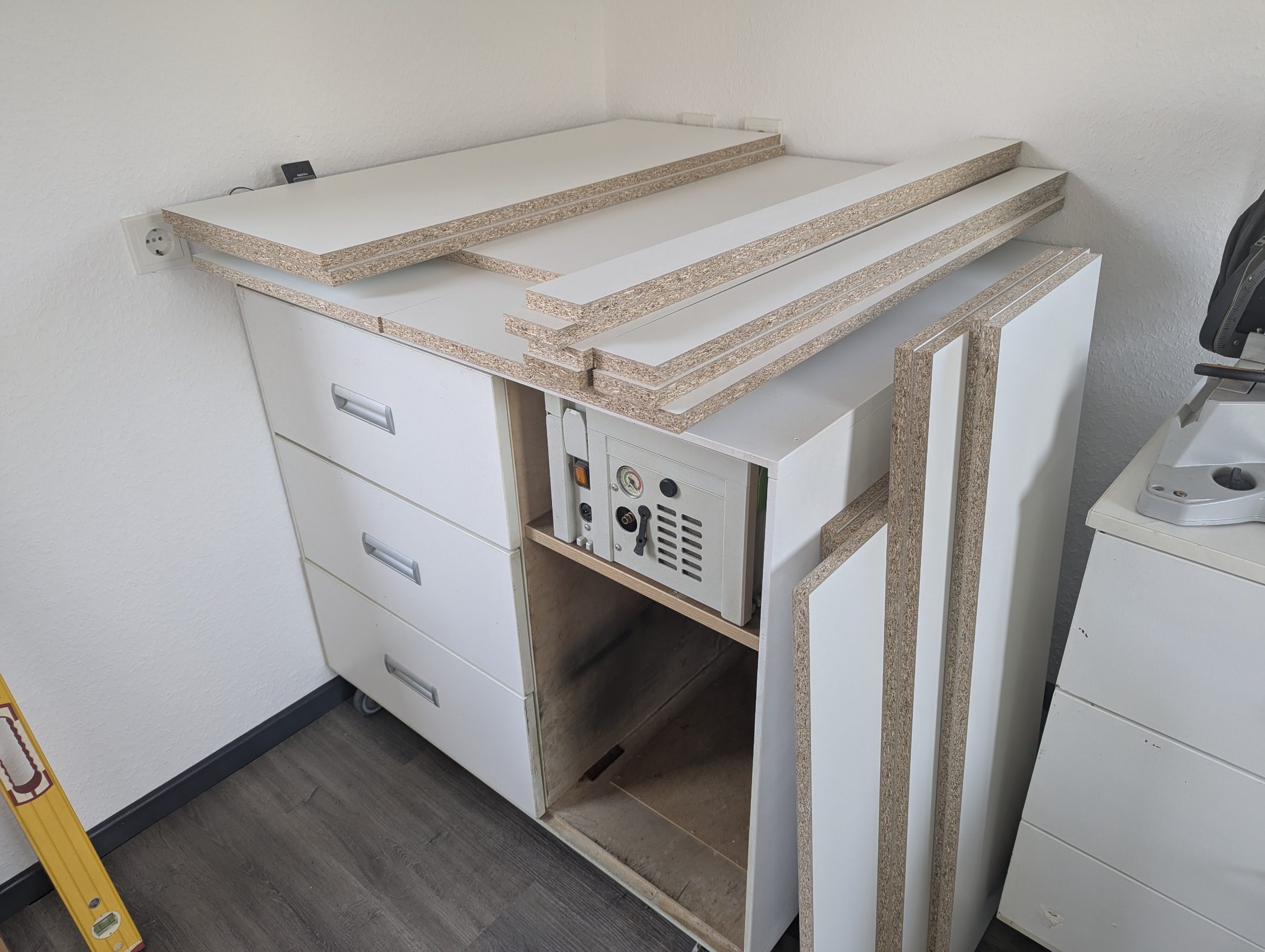 Jetzt brauchte ich einen Schrank für die Schleifmittel-Packungen.
