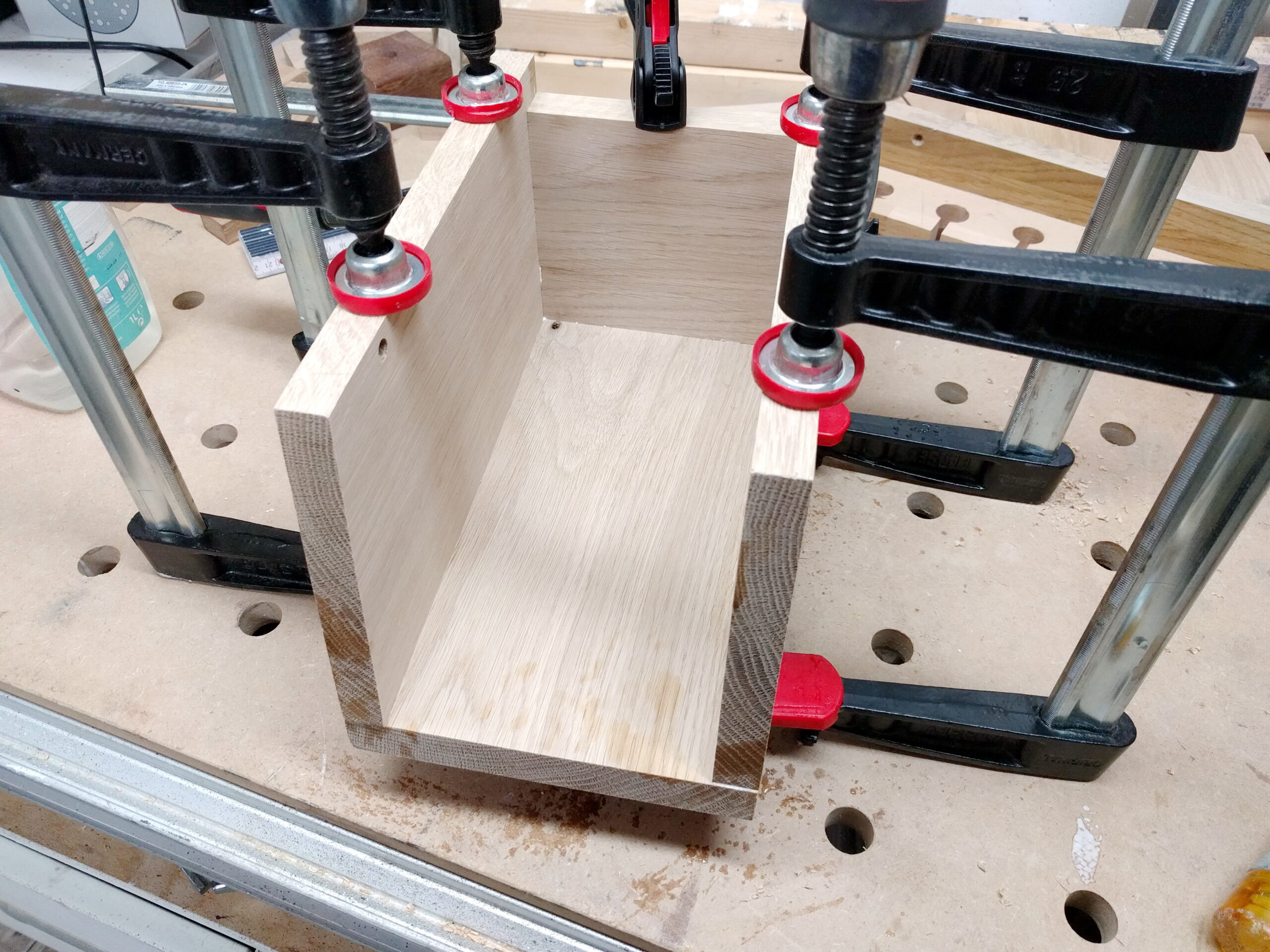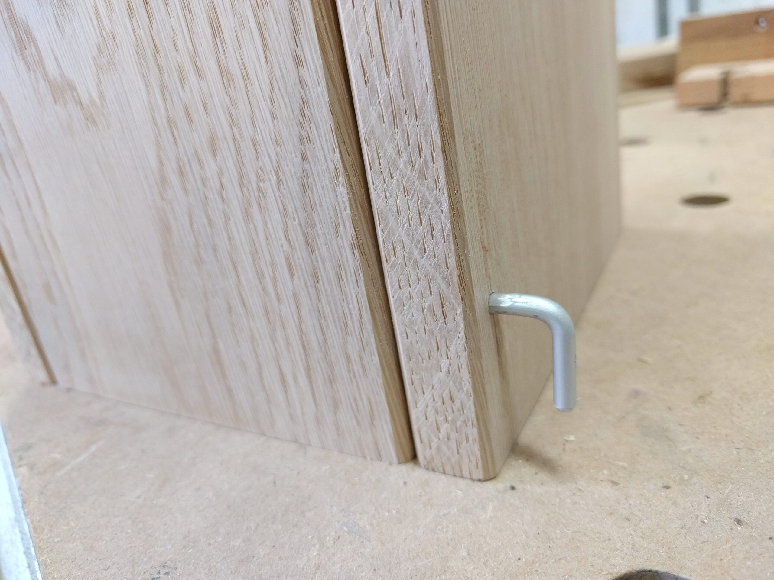 An den Holzverbindungen treten keine großen Kräfte auf, daher kann jede denkbare Verbindungsart verwendet werden – sei es Nagel, Schraube, Heften, Dominos oder, wie hier, Lamellos.