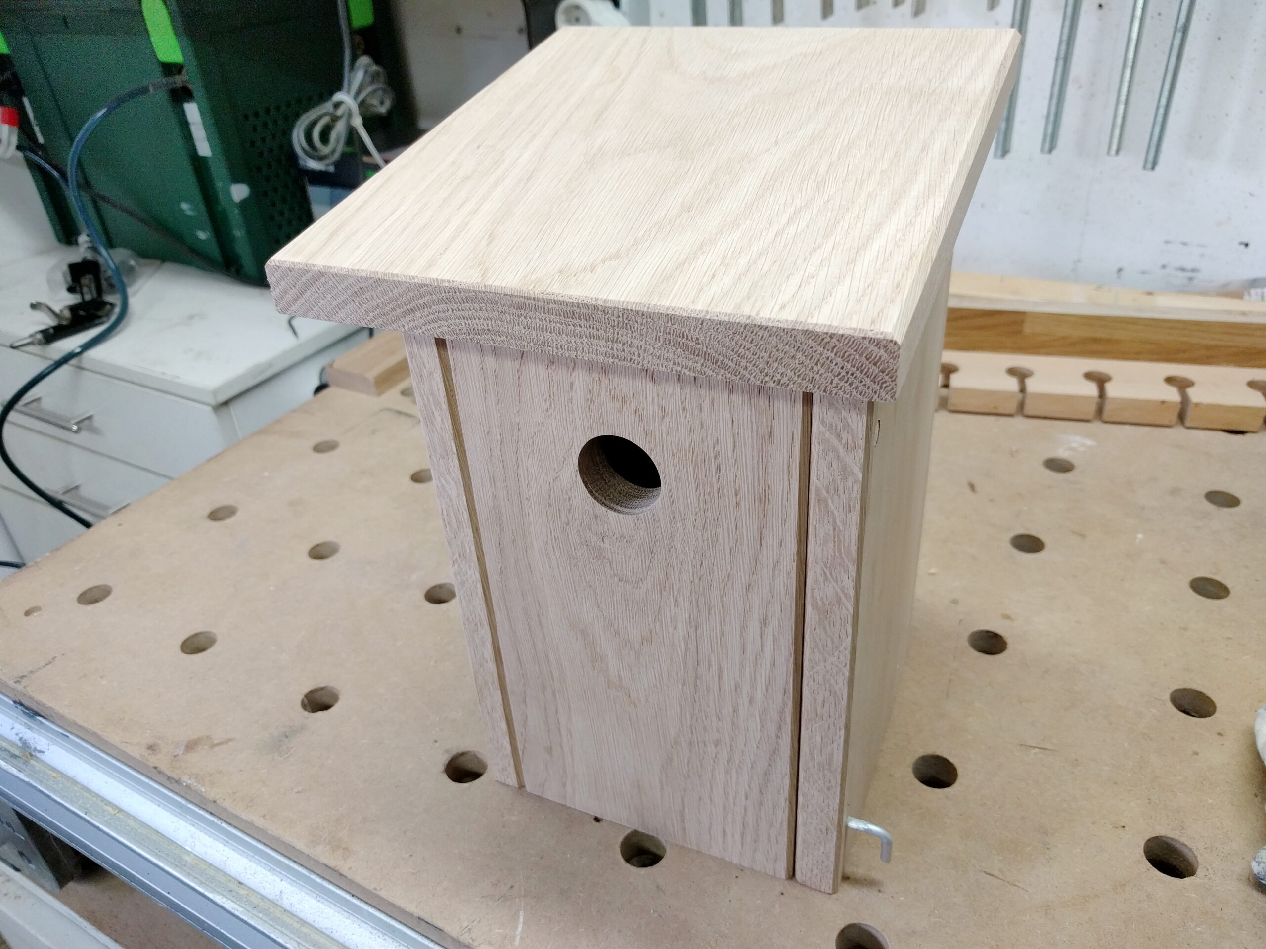 Hier beschreibe ich den Bau eines Nistkastens in wenigen Schritten. Das Material ist grundsätzlich egal, solange es ausreichend dick ist – wie hier mit 19 mm Materialstärke.