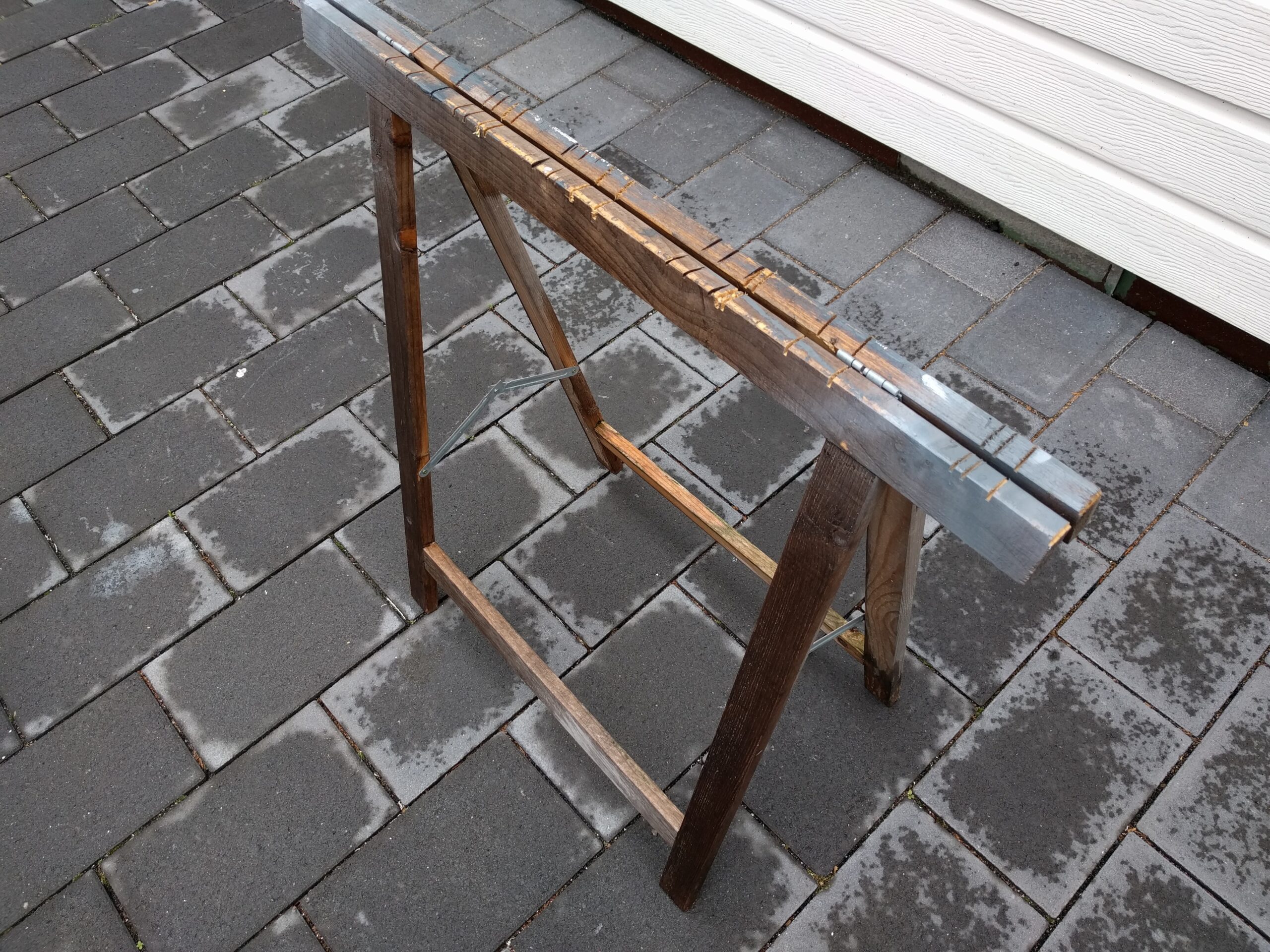 Dieser Sägebock ist schon einige Jahre alt und stand immer draußen am Zaun.