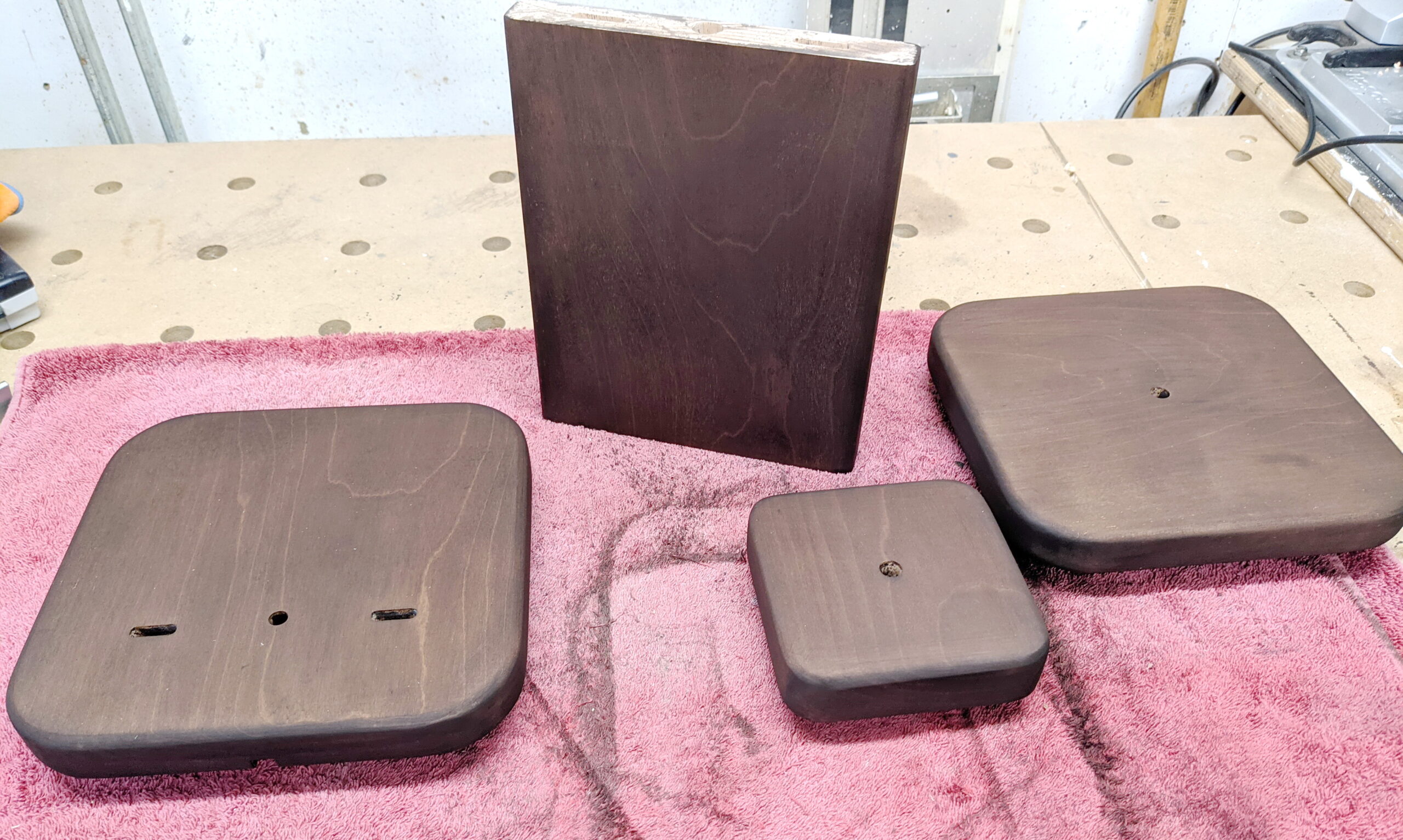 Das Holz habe ich zweimal gebeizt, jeweils mit Zwischenschliff. Erst nach vollständiger Durchtrocknung wurde der Lack aufgetragen.