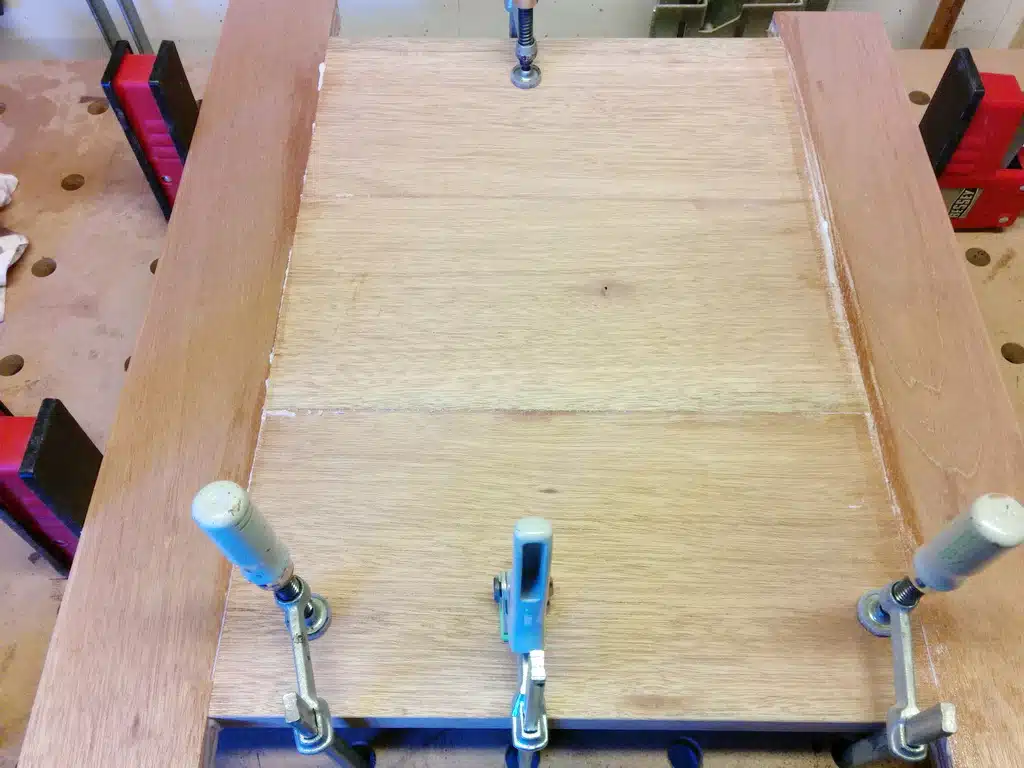 Ein wichtiger Tipp aus der Praxis: Achtet beim Verleimen penibel darauf, dass die Fugen absolut dicht sind. Wenn dort Wasser eindringt und gefriert, sprengt das Eis selbst das härteste Holz! Den finalen Zuschnitt mache ich erst, wenn der Leim komplett ausgehärtet ist – so wird alles perfekt rechtwinklig.