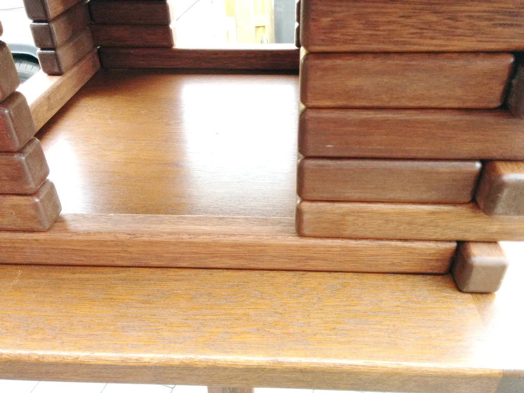 Zu dieser Zeit war Meranti mein absolutes Lieblingsholz. Es wirkte fast so, als würde es im Lager nur darauf warten, endlich zu einer herrschaftlichen Villa verarbeitet zu werden. Also gab es kein Zurück: Es musste alles aus Meranti sein!