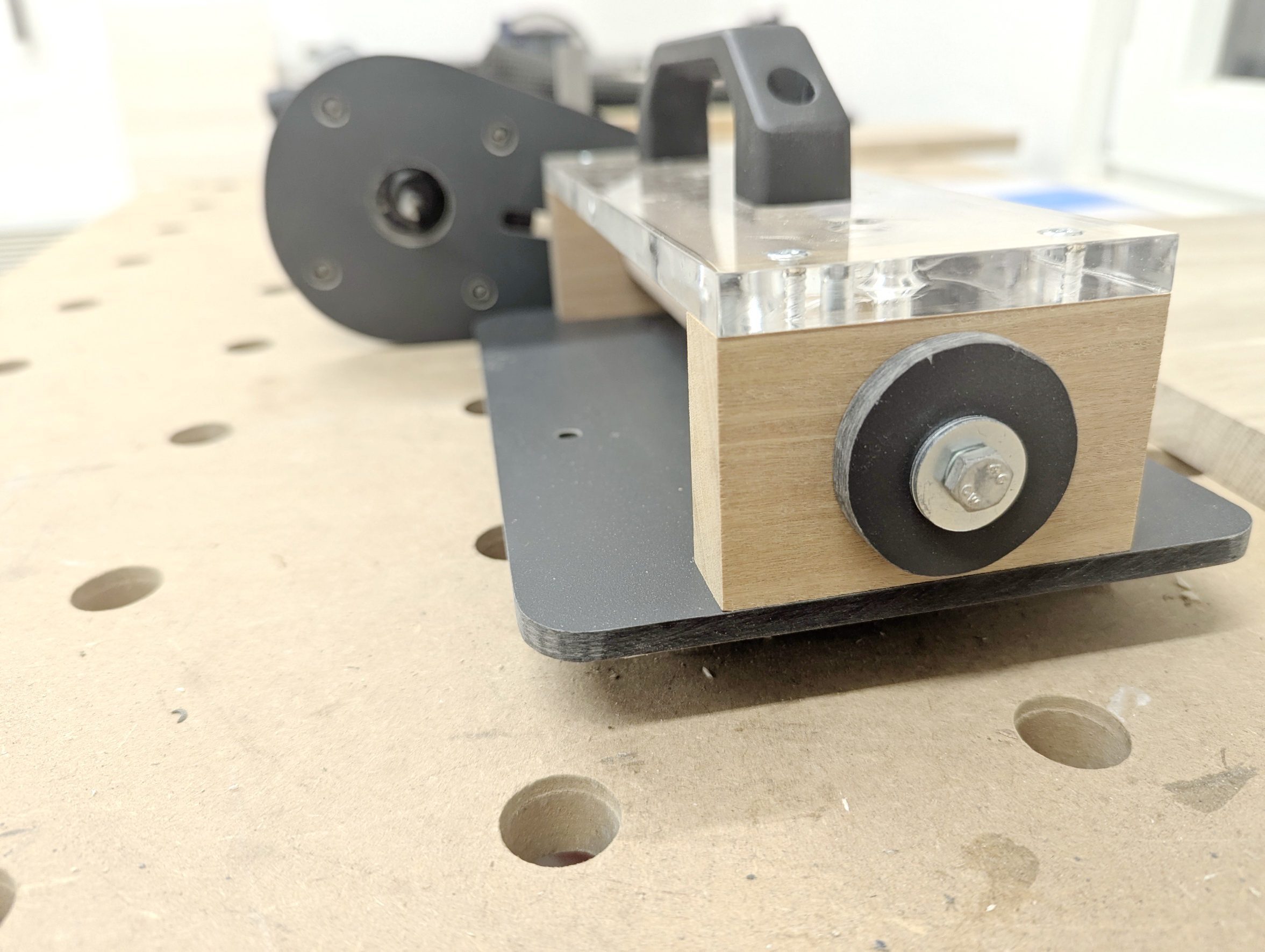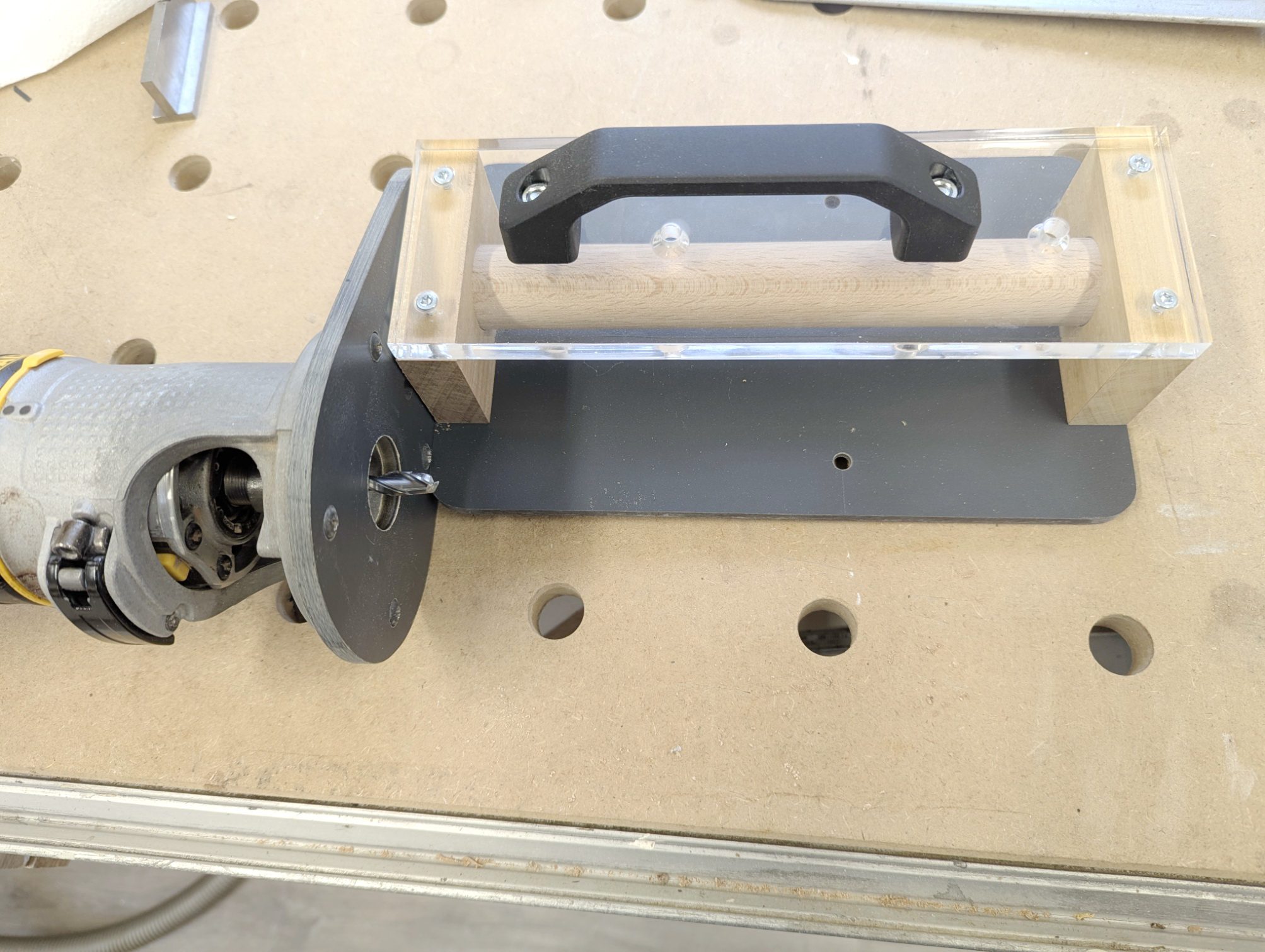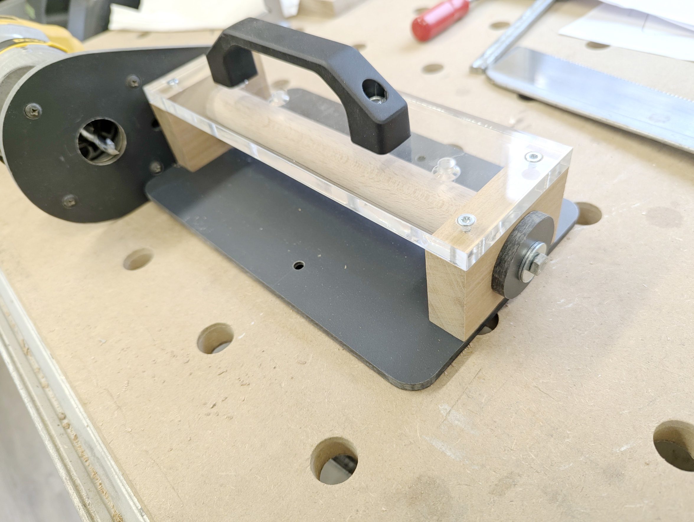 Dieses Eckenfräsgerät habe ich manuell aus HPL und Holz gebaut.