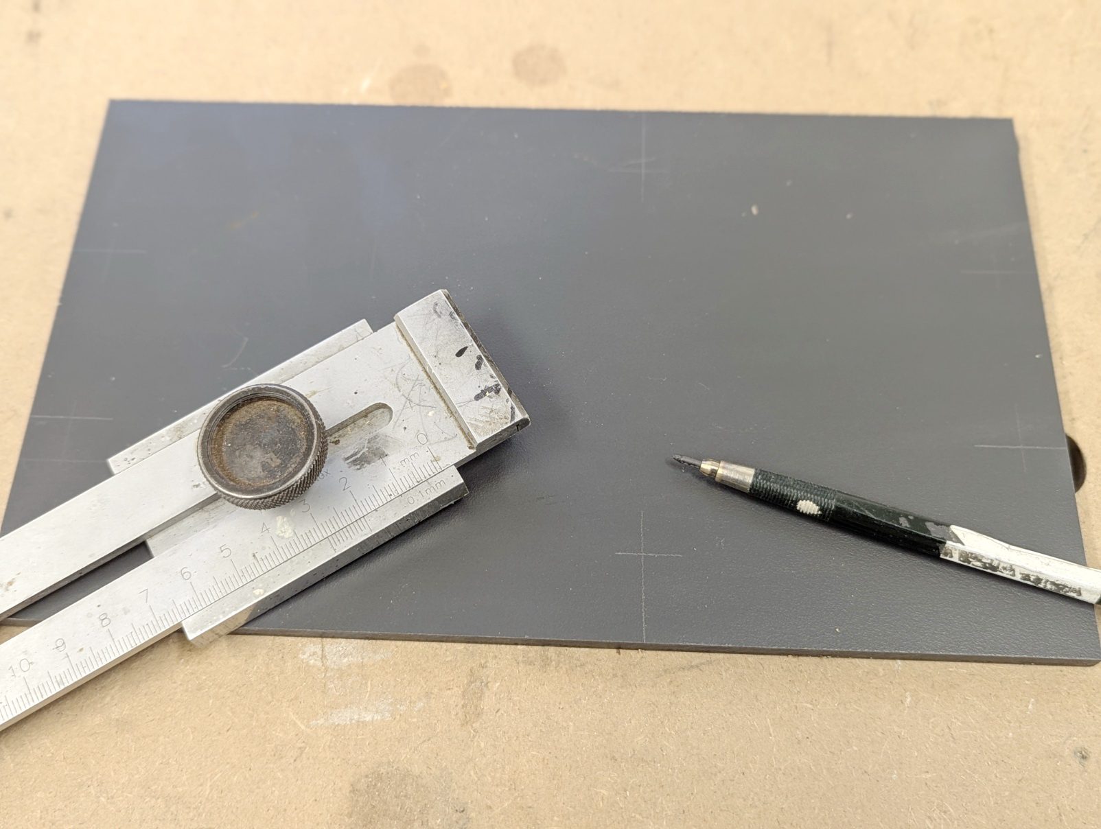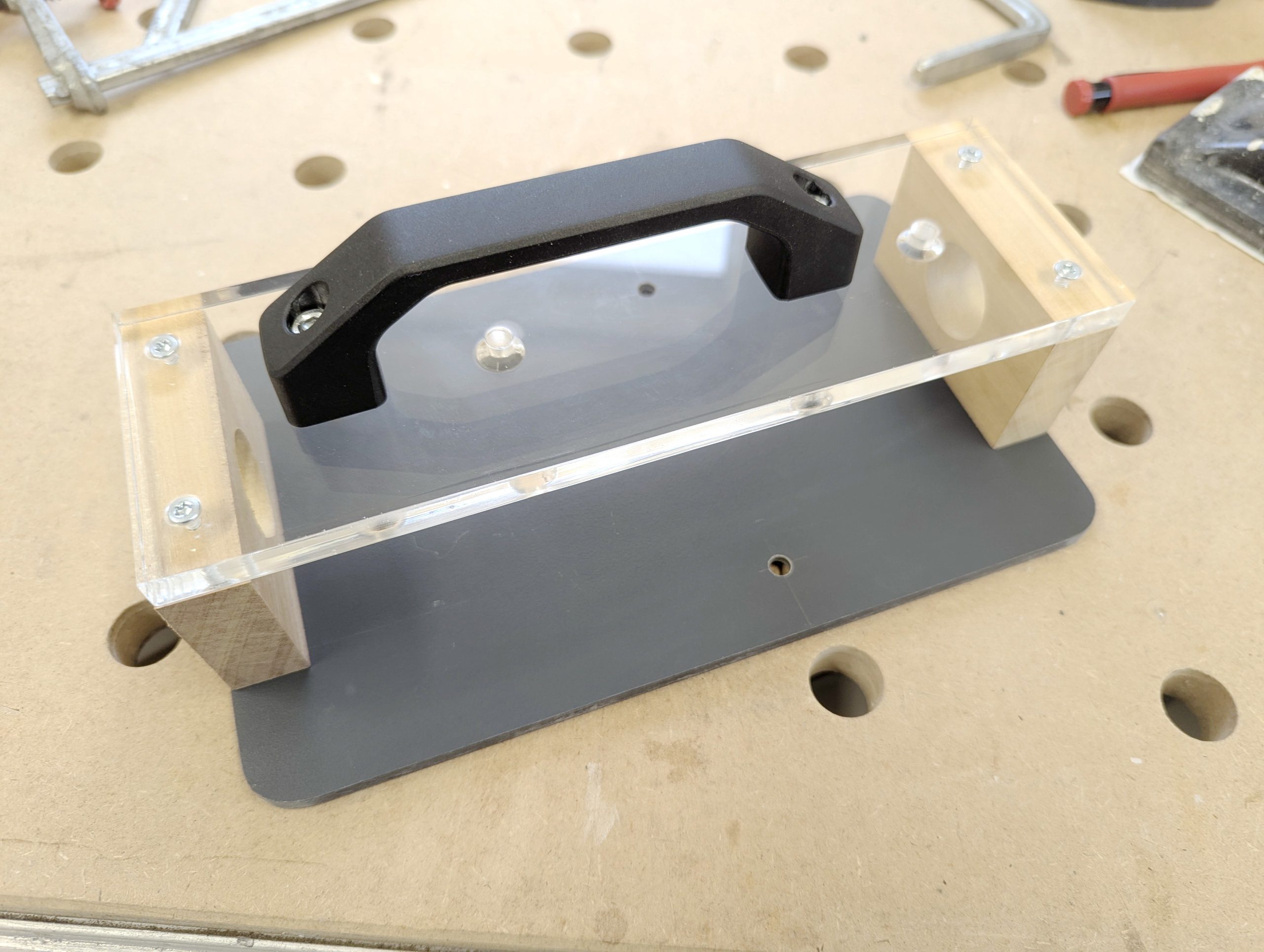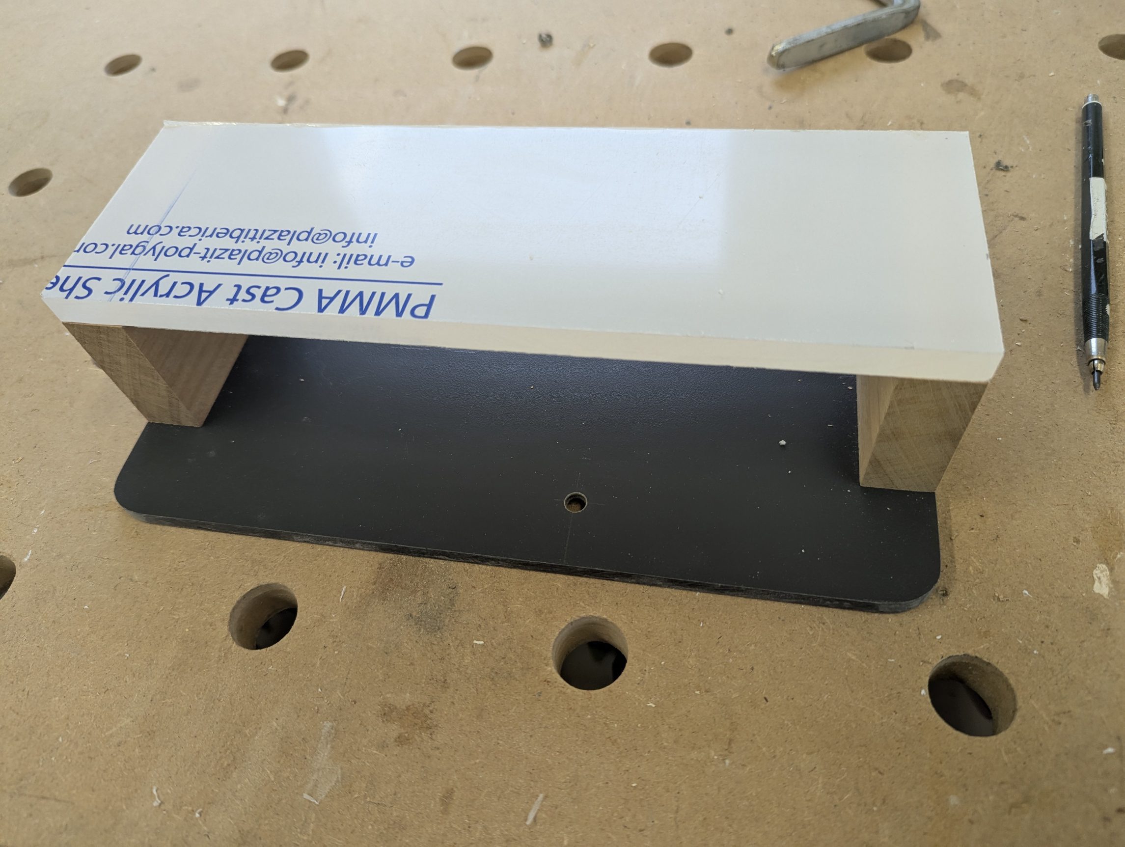 Dieses Eckenfräsgerät habe ich manuell aus HPL und Holz gebaut.