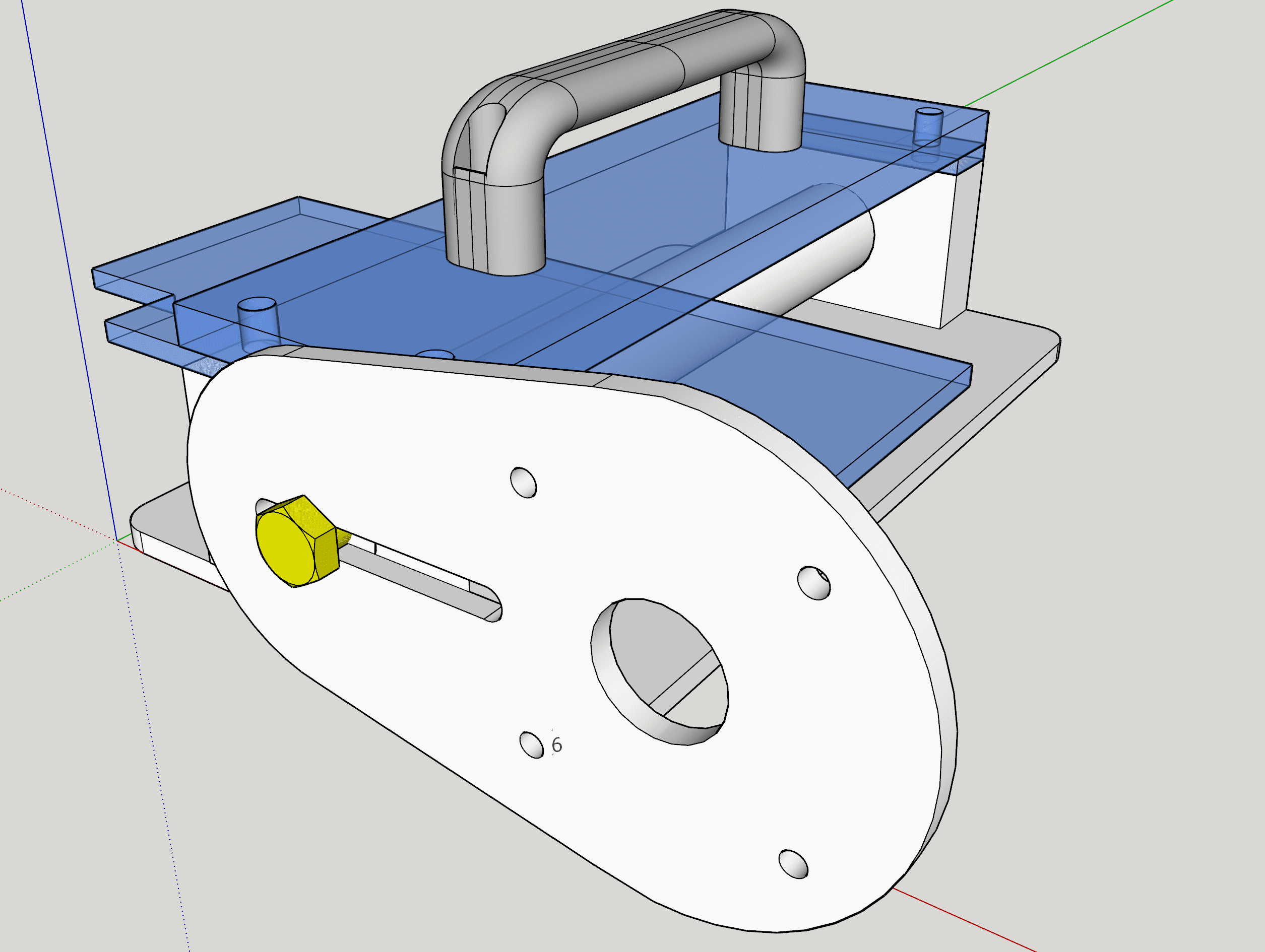 Noch ist die gekaufte Kunststoffwelle im Modell. Auch diese werde ich ausdrucken. Nur dauert der Ausdruck der Welle über 5 Stunden.