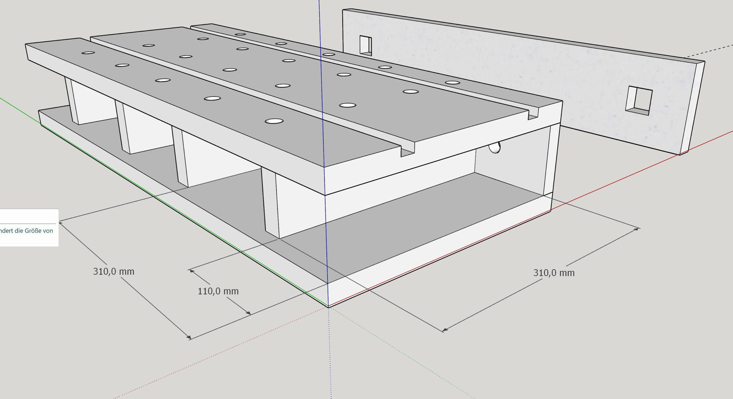 Hier habe ich die KREG-Frässchablone korrekt an der Buche ausgerichtet und von unten fotografiert.