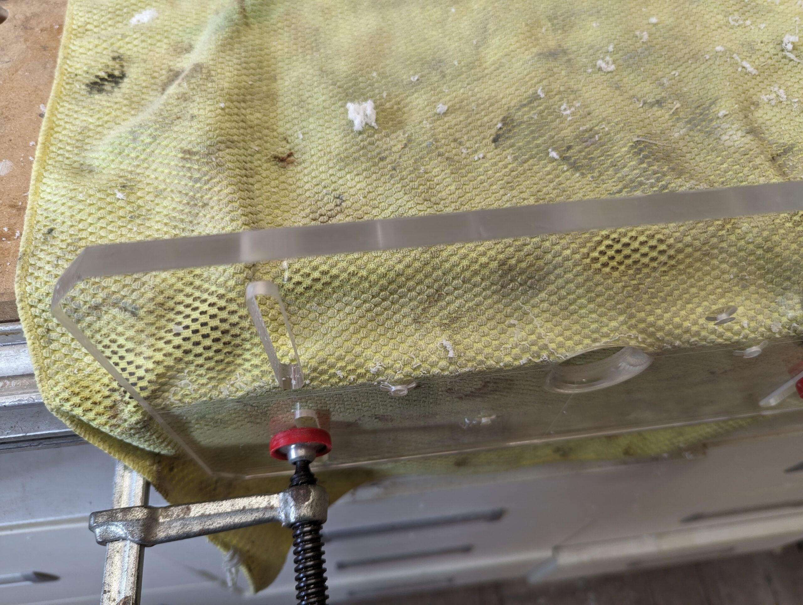 Trotz großer Vorsicht sind die Schnittflächen „unschön“. Auf die Funktion der Fräshilfe hat dieser Umstand keinerlei Einfluß. Nur für den Kopf. Sieht halt nicht so gut aus.